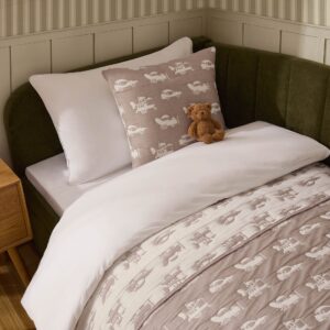 The Morgan Transport Matelassé Kids Bedspread and Cushion Cover Set is adventure-ready and bedtime-approved.Soft, stylish, and full of imaginationDesigned in a calming taupe with a playful transport print, the Morgan Matelassé set brings storybook charm to your child’s bedroom. From retro planes to speedy cars, the raised woven design adds texture and fun without being…