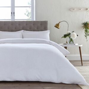 Take yourself away to the paradisal shores of the Aegean Sea with our Mykonos duvet cover. Featuring a delicate 100% cotton seersucker weave, this pretty all-white collection has a super soft 200 thread-count cotton percale on the reverse.Matching pillowcases are also available in this alluring collection for an elegant finish.