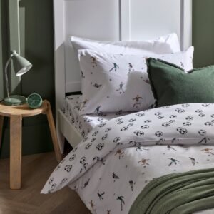 For young footy fans, our Oscar Football duvet cover set is a trophy winner. This reversible duvet cover shows a mix of football players on one side and iconic black and white footballs on the other. Our 100% cotton, 144 thread count duvet cover means they can comfortably dream about winning the World Cup. Each duvet…