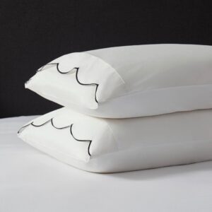 The finishing touch your bed deserves, these scallop-edged pillowcases are all about understated elegance.Timeless design, soft to the touchMade from smooth 220 thread count cotton sateen, these pillowcases offer both comfort and style. The delicate scallop trim in black, blue, olive or berry adds a touch of character, making them the perfect pairing with the…