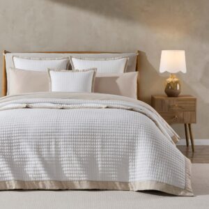 Create a serene and elegant bedroom with the Portobello Floral Embroidered Linen Edge Bedspread, designed for effortless layering.Classic quilting with a natural linen touchFeaturing soft white quilting with delicate floral embroidery, this bedspread is beautifully finished with a natural linen edge for a sophisticated contrast. Lightweight yet cosy, it’s perfect for draping over your bed…