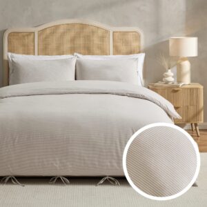 Bring the feel of a natural sanctuary to your bedroom with the 200 thread count cotton plain-dye duvet cover set in natural. Simply elegant style Beautifully made with 100% premium washed cotton in a stunning natural shade, this duvet cover set can add a sense of relaxing tranquillity to your sleeping space. Featuring a subtle yet stylish…