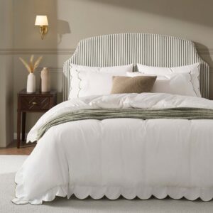 A timeless classic with a playful twist, the Simone Scallop Duvet Cover brings effortless elegance to your bedroom.Crisp, smooth, and beautifully finishedCrafted from luxurious 220 thread count cotton sateen, this duvet cover offers a silky-soft feel with a subtle sheen. The delicate scalloped edge adds a charming touch, available in off-white with black, blue, olive…