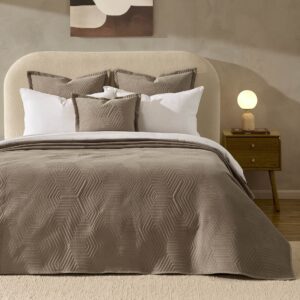Bring understated elegance to your bedroom with the Torino Velvet Geometric bedspread.Geometric style in soft velvetIn a versatile taupe shade, this bedspread combines contemporary design with everyday luxury. The geometric stitching creates a beautifully textured finish, while the soft velvet adds warmth and sophistication. Generously sized to fit a king bed, it drapes gracefully over…