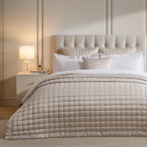 Featuring plush quilting and finished in a matte faux silk, the Vienna champagne bedspread is chic, classic and effortlessly elegant. This subtle shade adds a sophisticated edge to any bedroom, while the sumptuous quilting makes this design soft and inviting.To style your very own sanctuary, arrange this champagne bedspread over a king or super king…