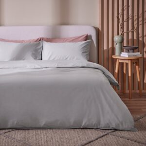 Bring the feel of a natural sanctuary to your bedroom with the 200 thread count cotton plain-dye duvet cover set in Dove grey. Simply elegant style Beautifully made with 100% premium washed cotton in a stunning dove grey shade, this duvet cover set can add a sense of relaxing tranquillity to your sleeping space. Featuring a subtle…